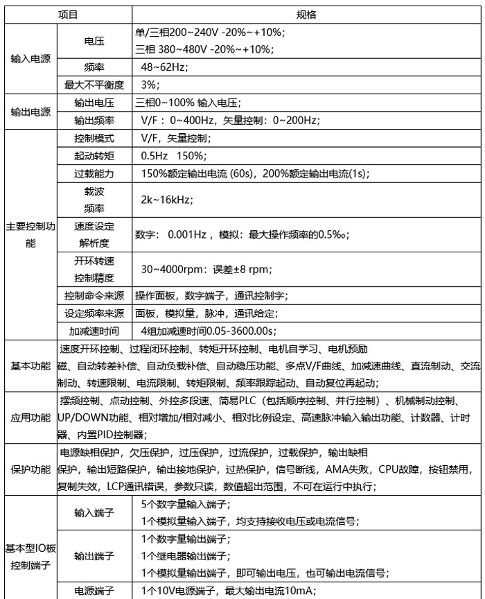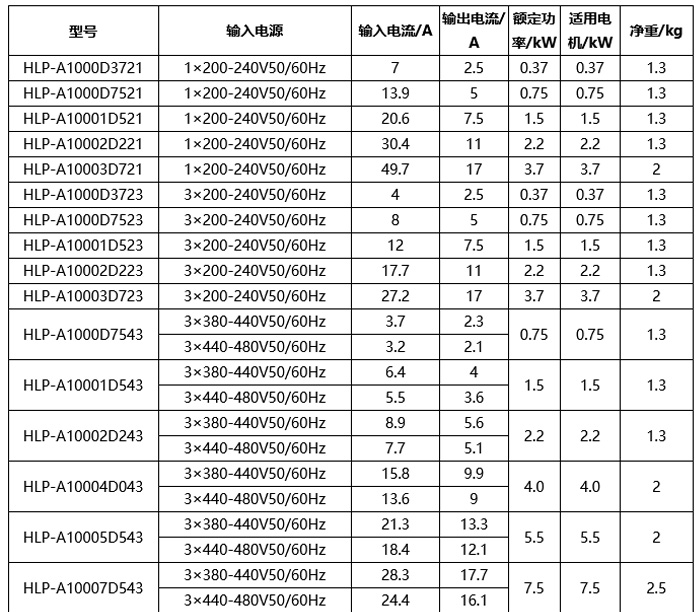 单相200V~240V 0.37~3.7kW